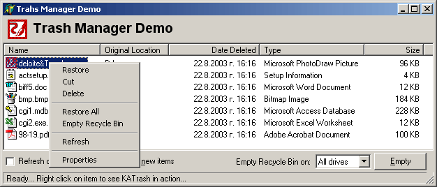 KATrash is component which gives you ability to control your Recycle Bin.